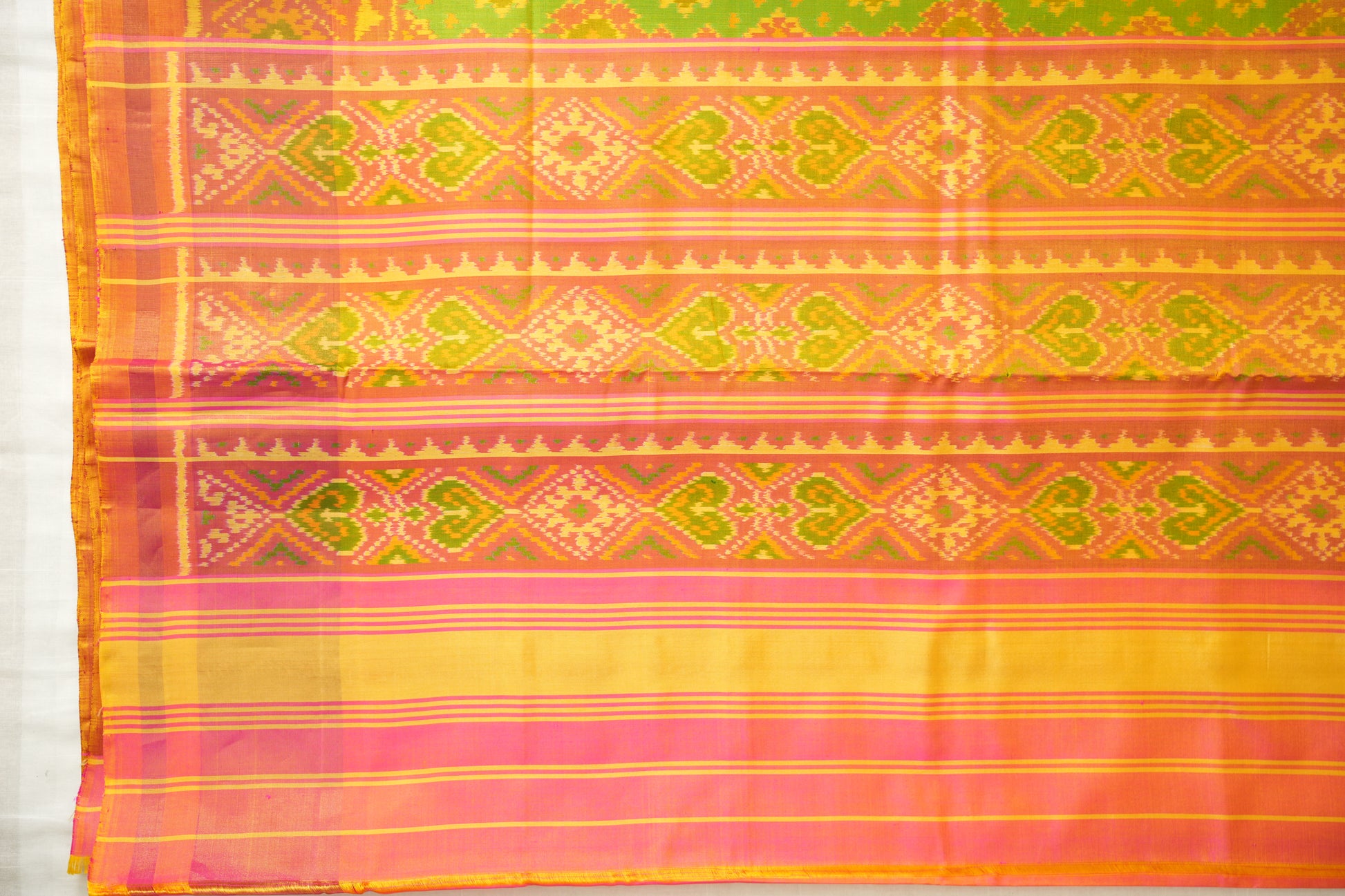 Green & Yellow Ikat Silk Saree