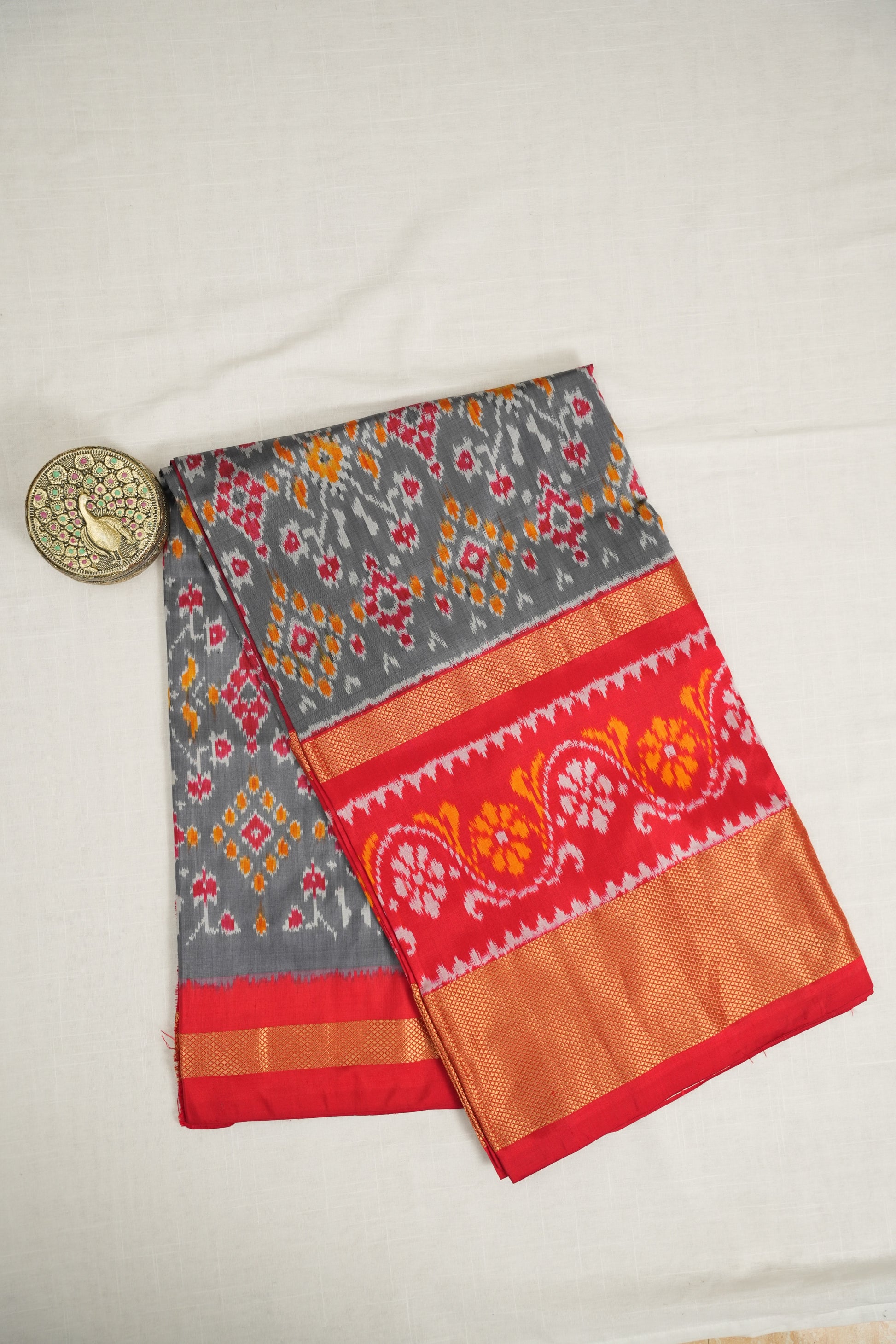 Pallu: Rich zari pallu in red and gold adding grandeur to the saree